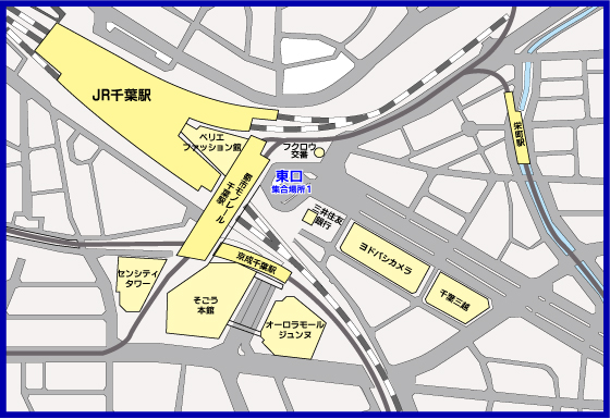 JR千葉駅東口改札を出ますと、正面にバス・タクシー乗場の有るロータリーが有ります。